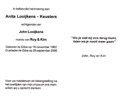 Joanna Adriana is geboren in Tilburg op 28-10-1917. Joanna Adriana is overleden, op de leeftijd van 40 jaar, in Groningen op 18-06-1958. Zij is begraven in Eelde op 21-06-1958. Beroep: Huisvrouw. Roepnaam: Annie.