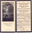Gerardus Franciscus OPRINS. Gerardus Franciscus is geboren in Gilze en Rijen op 21-12-1888. om 21:00 uur ten huize wijk A nummer 329. Aangifte werd gedaan door zijn vader in tegenwoordigheid van Alexander Benedictus Albers oud 29 jaren (Arbeider) en Wilhelmus van den Burg oud 26 jaren (Veldwachter). Op 01-07-1964 overleden in Oudenbosch, op de leeftijd van 75 jaar. om 19:35 uur. Aangifte werd gedaan door Francisca Spitters oud 67 jaren.