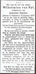 Petrus Wilhelmus is geboren in Gilze en Rijen op 30-10-1863. om 02:30 uur ten huize A nummer 33. Aangifte werd gedaan door zijn vader. Hierbij waren aanwezig Willem Smans oud 51 jaren (Koperslager) en Arnoldus van Hoek oud 40 jaren (Daglooner). Op 10-09-1932 overleden in Gilze en Rijen, op de leeftijd van 68 jaar. om 01:00 uur ten huize wijk A nummer 481. Aangifte werd gedaan door Matheus van Riel oud 52 jaren (Schoenfabrikant) en Wilhelmus Johannes Otten oud 70 jaren. Doodsoorzaak: Carcinoma Hepatis (Type Leverkanker) Akte is ondertekend door Dr. W.R.P. Hoeks. Beroep: 1916 Timmerman / 1932 Timmerman.