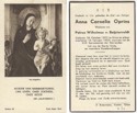 Cornelia Anselma Maria OPRINS. Cornelia Anselma Maria is geboren in Gilze en Rijen op 03-01-1901. om 04:00 uur ten huize wijk A nummer 38. Aangifte werd gedaan door haar vader en is geschied in tegenwoordigheid van Cornelis Gerardus Everts oud 53 jaren (Schoenmaker) en Wilhelmus van den Burg oud 38 jaren (Veldwachter). Op 31-01-1980 overleden in Breda, op de leeftijd van 79 jaar.