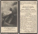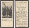 Maria Cornelia OPRINS. Maria Cornelia is geboren in Gilze en Rijen op 24-04-1913. om 13:30 uur ten huize wijk A nummer 75. Aangifte werd gedaan door haar vader in tegenwoordigheid van Cornelis Gerardus Everts oud 65 jaren (Schoenmaker) en Petrus Koks oud 35 jaren (Schoenmaker). Op 31-03-1963 overleden in Gilze en Rijen, op de leeftijd van 49 jaar. om 19:30 uur. Aangifte werd gedaan door Henricus Lucianus Wouters oud 48 jaren (Landbouwer).