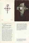 Catharina Maria is geboren in Gilze en Rijen op 06-07-1910. om 16:30 uur ten huize wijk A nummer 482. Aangifte werd gedaan door haar vader in tegenwoordigheid van Constantinus Segers oud 32 jaren (Broodbakker) en Jacobus van Beijsterveldt oud 46 jaren (Schoenmaker). Op 03-03-1976 overleden in Gilze en Rijen, op de leeftijd van 65 jaar. Zij is begraven in Gilze. Begraafplaats Alphenseweg. Graf id-nummer: 1645362, Begraafplaatsnr: 1966 (Plaats)aanduiding: M. 5.03.