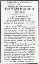 Maria Victoria is geboren in Gierle (Belgie) op 27-05-1897. Op 08-04-1946 overleden in Vosselaar (Belgie), op de leeftijd van 48 jaar.