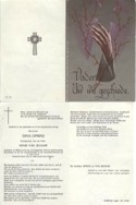 308. Dimphna Theresia Josepha OPRINS. Dimphna Theresia Josepha is geboren in Rijkevorsel (Belgie) op 20-08-1910. Op 08-05-1968 overleden in Brecht (Belgie), op de leeftijd van 57 jaar. Roepnaam: dina.