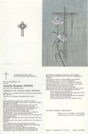 307. Joannes Baptista OPRINS. Joannes Baptista is geboren in Rijkevorsel (Belgie) op 07-11-1907. Op 01-07-1969 overleden in Brasschaat (Belgie), op de leeftijd van 61 jaar.