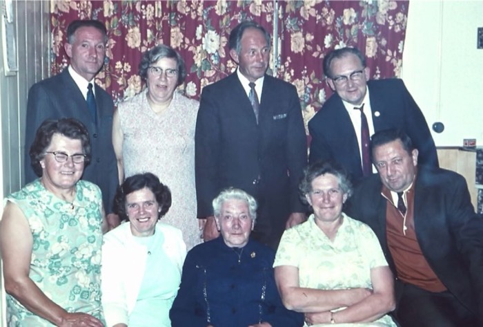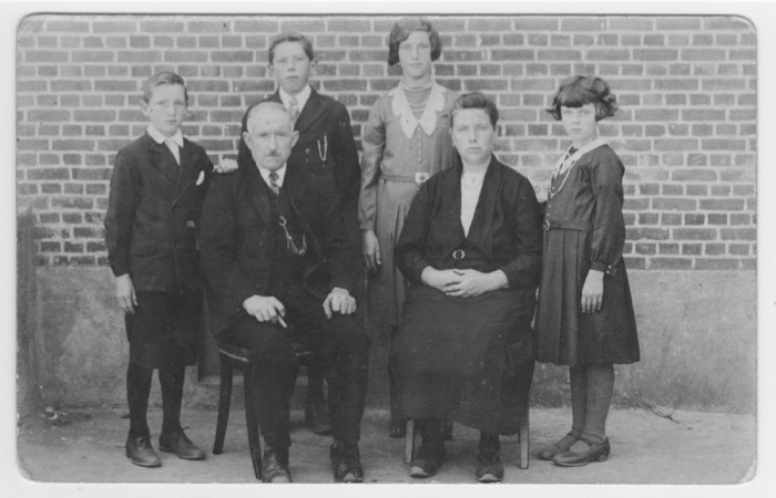 Familie Oprins - Pelkmans vlnr: Toon, Willeke, Kees, Truus, Net, Toke