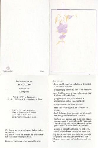 Overlijden: 03-01-1995, Gilze en Rijen