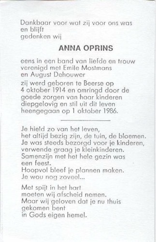 Overlijden: 01-10-1986, Vosselaar (Belgie)