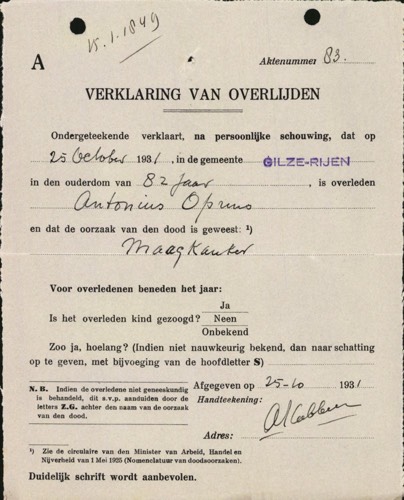 Overlijden: 25-10-1931, Gilze en Rijen