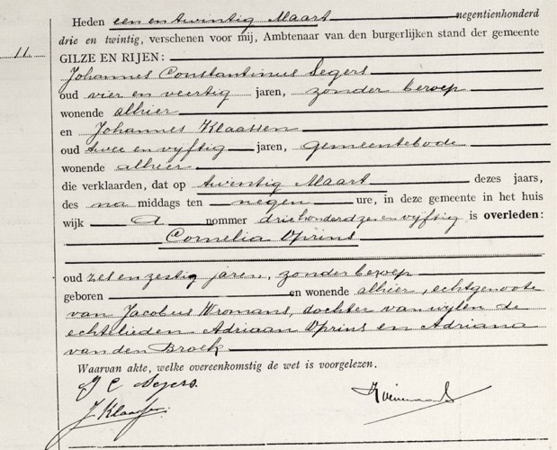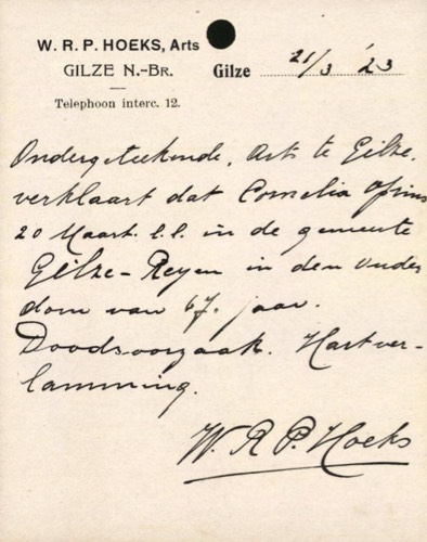 Overlijden: 20-03-1923, Gilze en Rijen