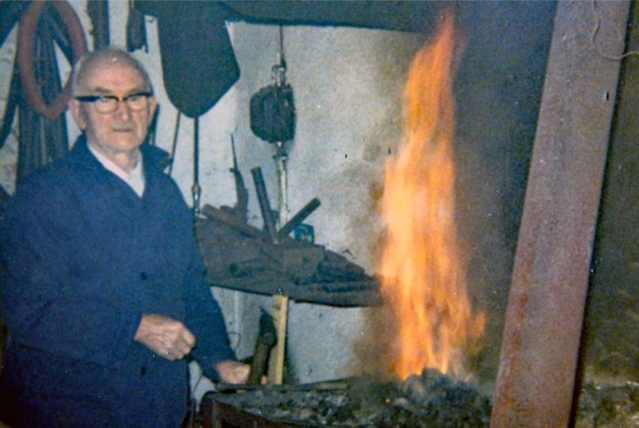 C. Oprins in zijn smederij aan de Nieuwstraat