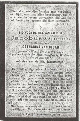Overlijden: 25-05-1901, Westmalle (Belgie)
