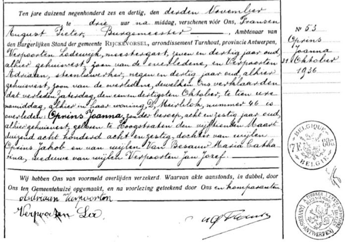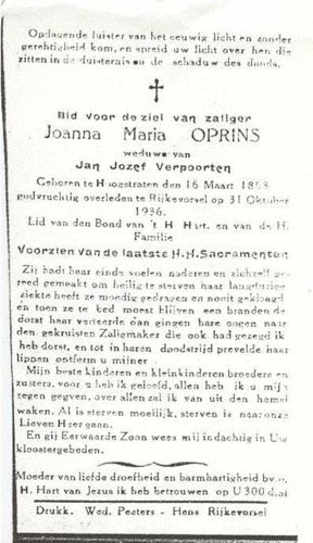 Overlijden: 31-10-1936, Rijkevorsel (Belgie)