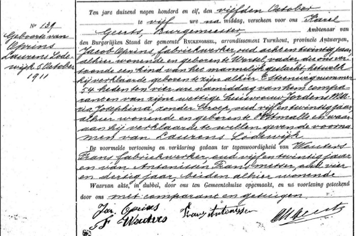 Geboorte: 05-10-1911, Rijkevorsel (Belgie)