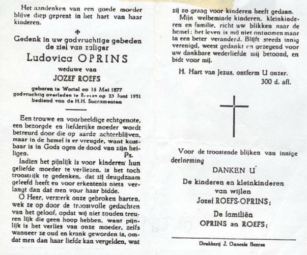 Overlijden: 23-06-1951, Beerse (Belgie)