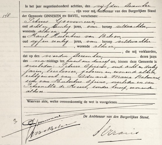 Overlijden: 04-12-1918, Ginneken en Bavel