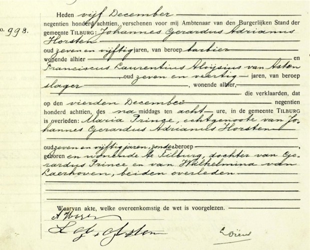 Overlijden: 04-12-1918, Tilburg