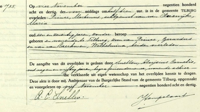 Overlijden: 04-11-1938, Tilburg