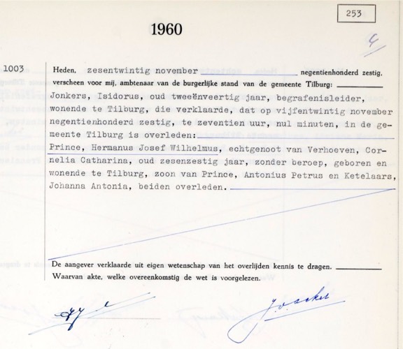 Overlijden: 25-11-1960, Tilburg