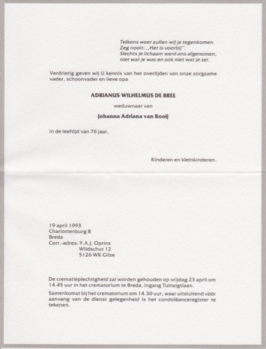 Adrianus Wilhelmus de BREE & Joanna Adriana van ROOIJ