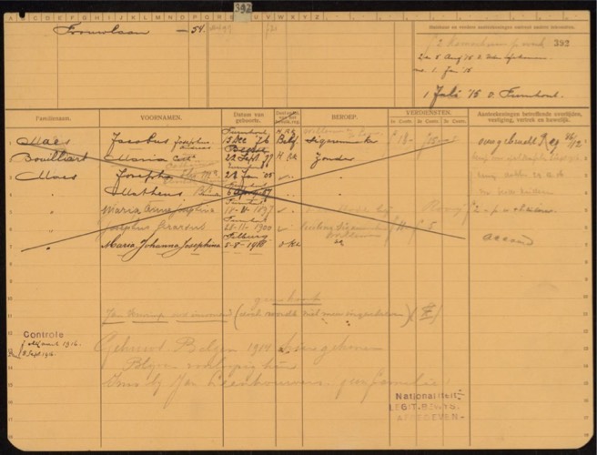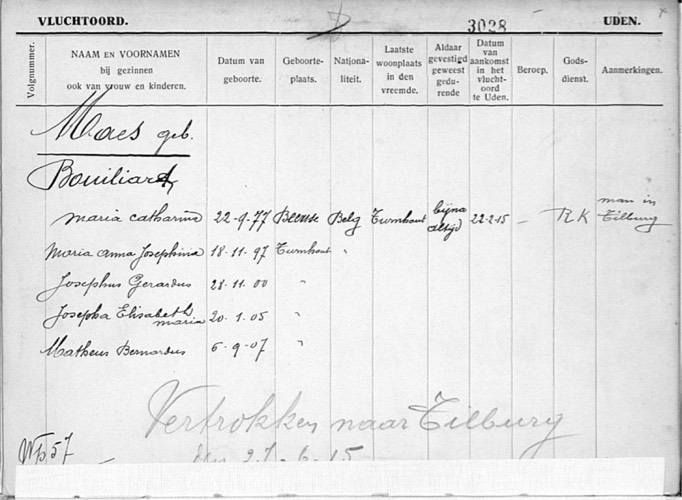 Maes - Bouilliart Inschrijfkaart Vluchtoord Uden