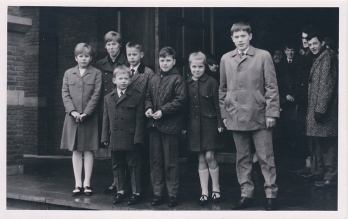 vlnr. Nellie Oprins, Ria Oprins, Ton Oprins, Jack Oprins, Gerrit Timmermans, Marian Timmermans, Wim Oprins
