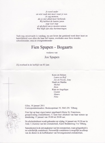 Adrianus Cornelis SPAPEN & Josephina Petronella BOGAARTS