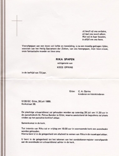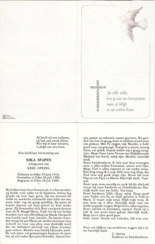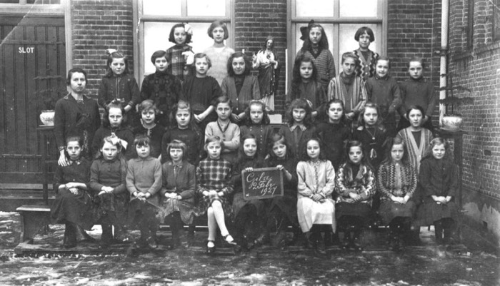 Op de foto klas 4 van juf Petronella van der Pluijm (1927-1931). Zittend vlnr: Pita Timmermans, Anna Grauwmans, Anna Kokx, Anna van Bezouw, Nelly Jacobs, Lena de Vet, Luce van den Wildenberg, Anna Klaassen, Lena de Vet, Marie Kock, Cisca Theeuwes. 2e rij vlnr: juf Petronella van der Pluijm, Liza Gerrits, Truus de Haas, RIKA SPAPEN, Cor Hendrickx, Dina van Eijck, Naan Aarts, Anna Martens, Jo Willemse, Rika Stadhouders. 3e rij vlnr: To van Opstal, Jo Schrauwen, Anneke Scheepens, To Bink, Nelly Vromans, Gonda van Dongen, Marie Grauwmans, Liza Zebregts. Bovenste rij vlnr: Liza van Enschot, Gusta Smolders, Marie de Groot, Betsie Roestenburg