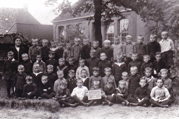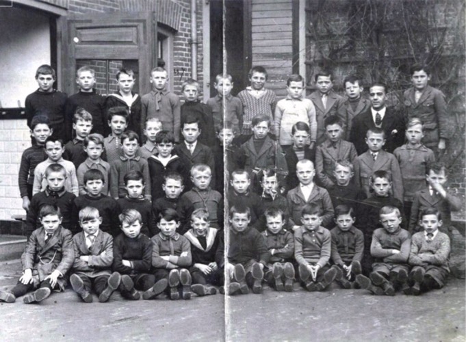 Op de foto 1e rij vlnr: Sjaak de Groot, ? , Jan van Dorst, Piet Graafmans, - Gijsbregts, Jan van Hoek, Wim van Gestel. 2e rij vlnr: Jantje Wouters, Koos Broers, Toon Geerts, Kees Jacobs, ? , Huub Kusters, Harrie Bink, Sjef Haarbosch, Kees Oprins, Jan Sebregts, Harrie van Beijsterveldt. 3e rij drie knielende jongens vlnr: Harrie Theeuwes, Wout van den Wildenberg, ?. 4e rij staand vlnr: Nard Louws, Janus Hamels, Jos Verhoeven, ? , Janus van Opstal, Christ van Bavel, Joske Pijpers, Toon van Ogh, Piet van Bavel, Jan Waegemaekers, Jan Kreeft, Kees Hermans, Piet Oprins. Achterste rij vlnr: Pita Raaijmakers, Piet de Bont, Kees Smeekens, Jantje Vermeulen, Willem Oprins, ? , Sjaak Smeekens, Rinus Kreeft, KEES SPAPEN, Piet Kock, Dinus van Riel, Janus Graauwmans, ? , Piet van Opstal, Jantje Pijpers
